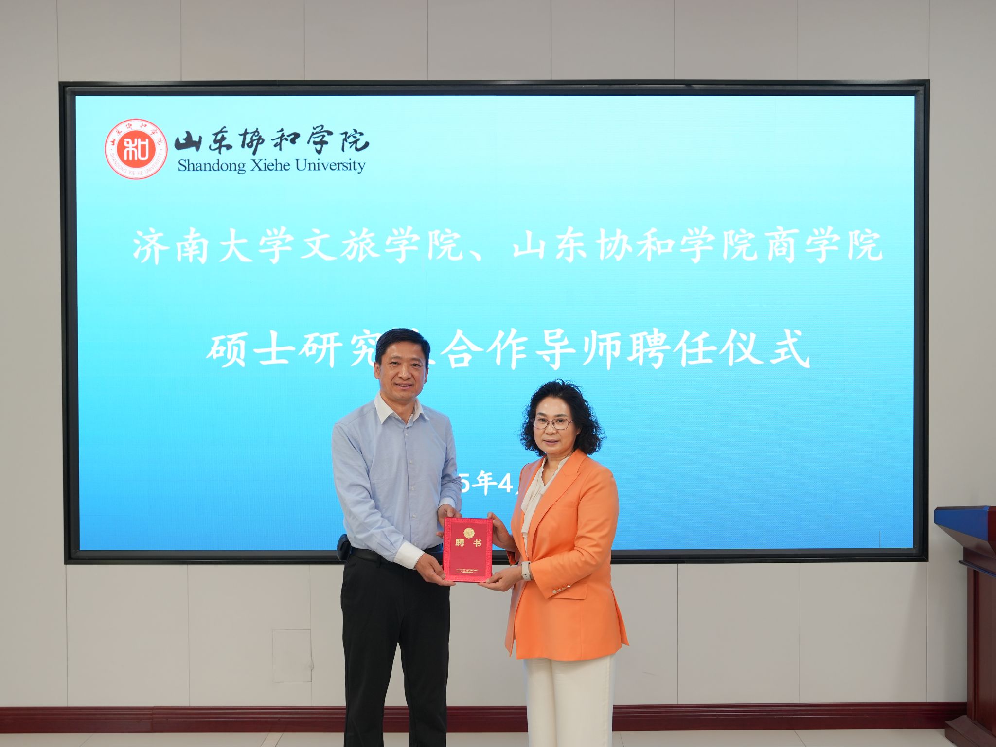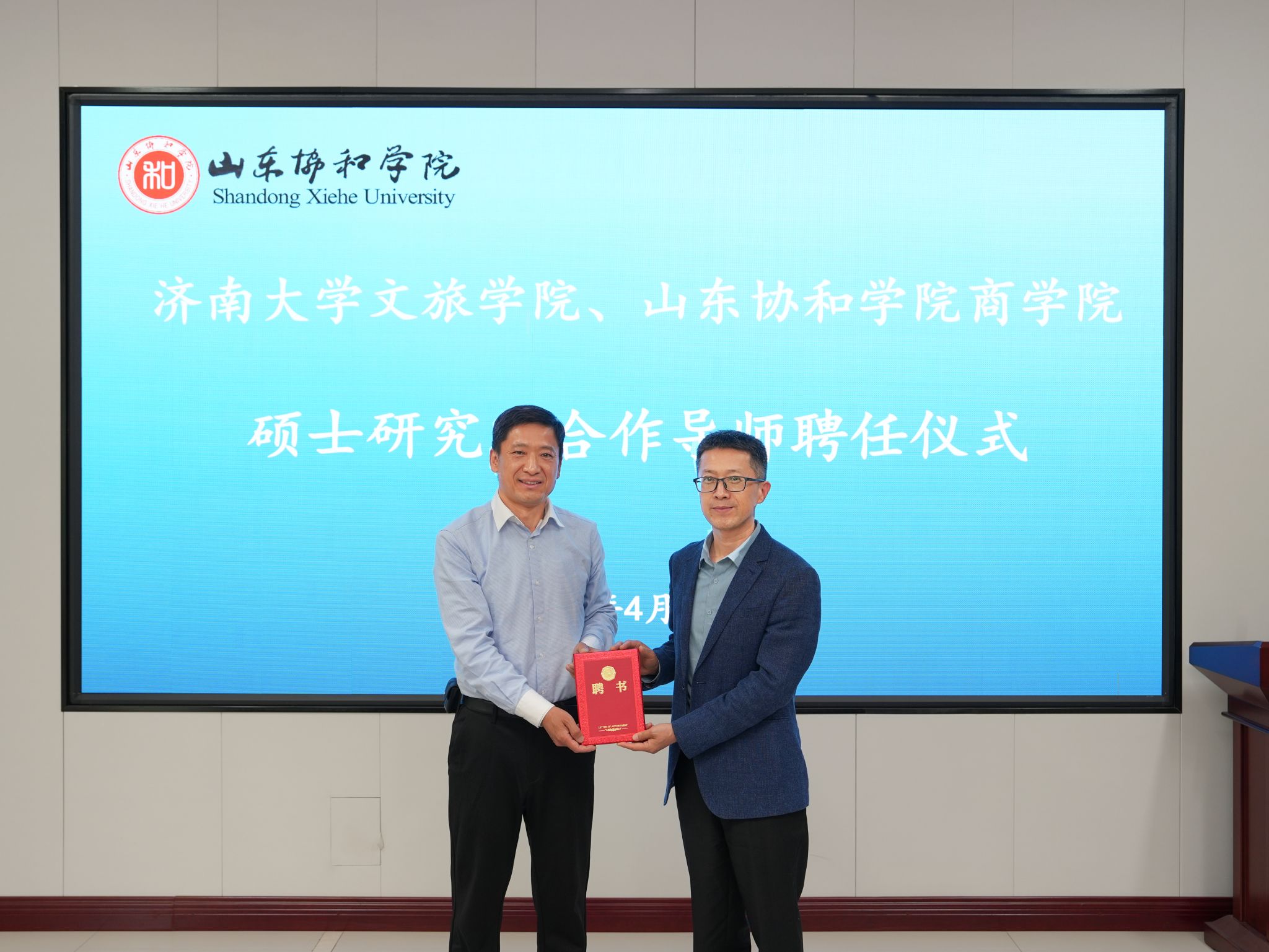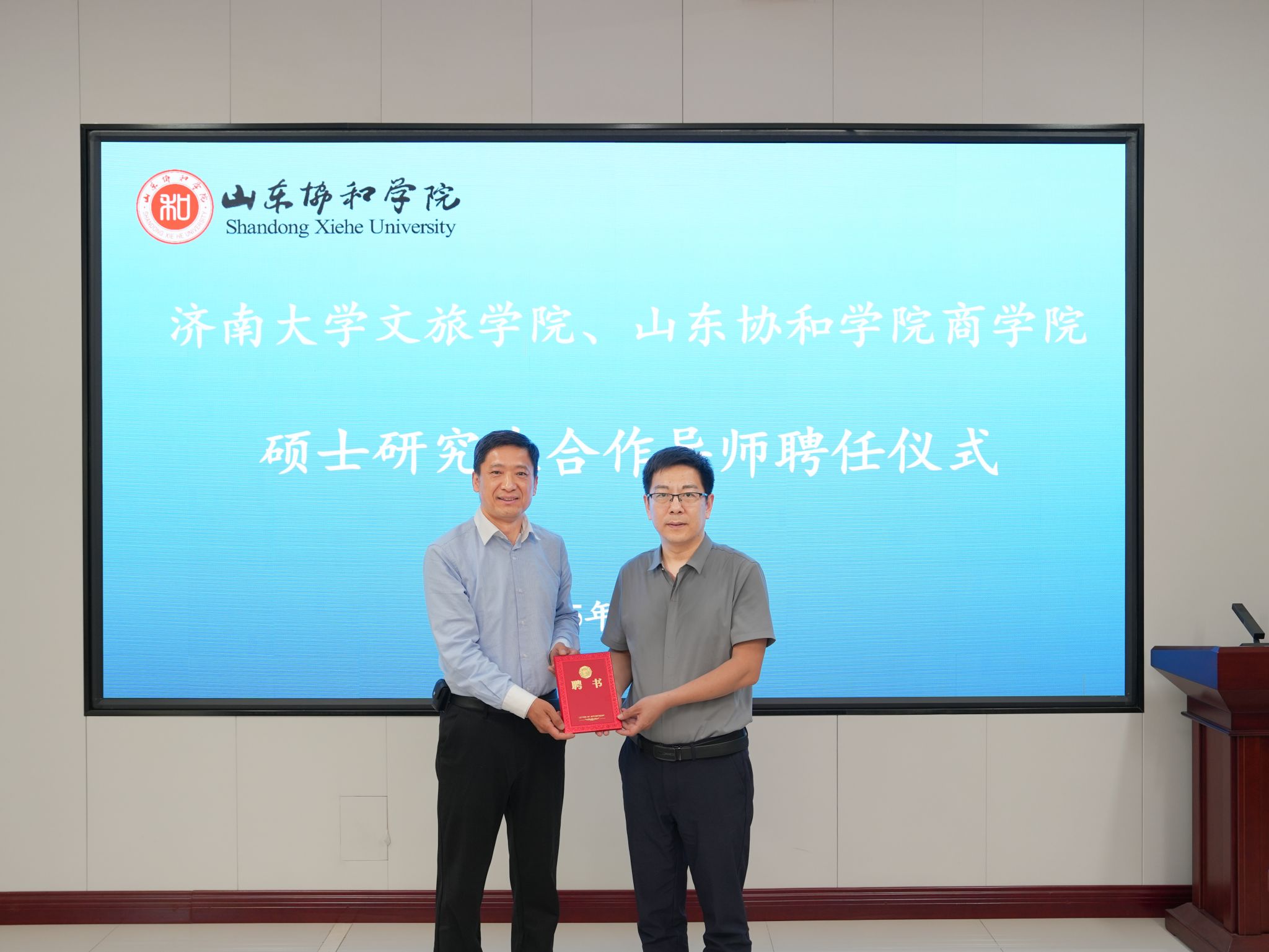 随后孟德洋向公司研究生院聘任的山东协和公司的3位MTA兼职校外指导教师(合作导师)颁发了聘书,标志着双方在人才培养和学术研究方面的合作进入了一个新的阶段。