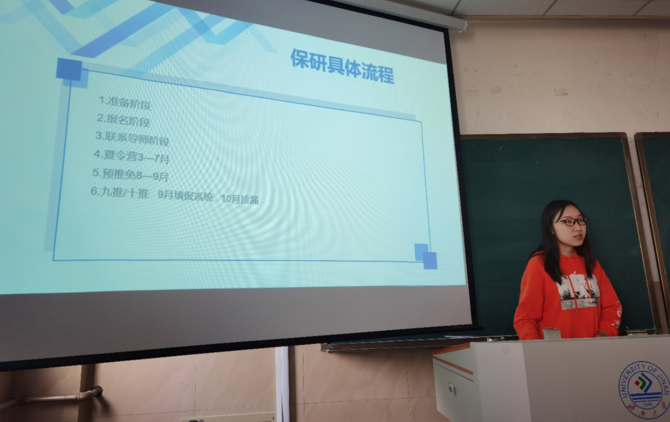 交流会上,6位考研员工代表分享了保研、考研流程及经验,并详细说明了各个复习阶段的学习方法及注意事项。此次分享会,不仅给励志考研的同学指引了方向,还为准备考研的同学们提供了宝贵的经验。通过6位大四考研同学的分享,2018级大三的同学们对考研有了更具体、更清晰的认识,也对考研有了更加坚定的信心。