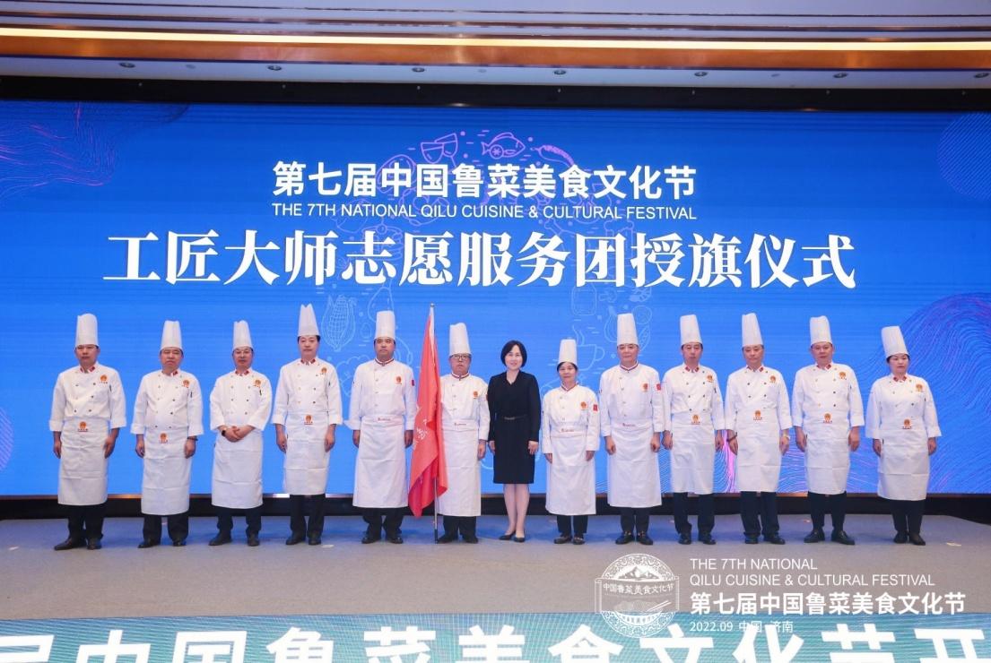 在本次中国鲁菜美食文化节启幕仪式上,由12名鲁菜大师组成的济南市饭店业协会“工匠大师志愿服务团”正式成立,并举行授旗仪式。该团队将在整个活动季过程中,积极参与志愿服务活动,联动不同社区举办线下活动,以弘扬鲁菜文化,倡导绿色健康生活为主题,在现场制作各款美食与百姓互动。除进社区外,还将走进校园现场为员工制作精美菜品或非遗技艺,讲解制作工艺,推动美食启蒙,定格鲁菜传承记忆。通过对话互动,强化鲁菜文化认知,传承工匠精神,引领培养“光盘行动”“公筷公勺”“节约餐饮”消费理念,倡导绿色消费新风尚。