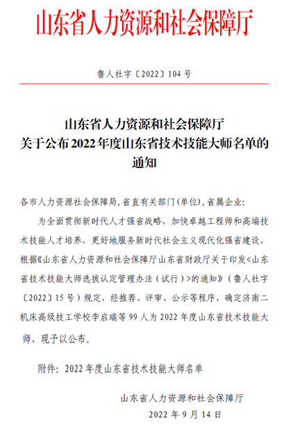 山东省技术技能大师是指在山东省行政区域内各类院校、科研院所和行业企业中,在公司产品、科学研究、生产经营等一线工作,具有高水平专业能力和高超技能技艺水平,并具有较强创新创造能力和社会影响力,经选拔认定的优秀复合型技术技能人才,每两年选拔一次,2022年度全省共99人入选。该活动对大力弘扬劳模精神、劳动精神、工匠精神,促进提高行业技术、技能培养水平,全面贯彻新时代人才强省战略,加快卓越工程师和高端技术技能人才培养,更好地服务新时代社会主义现代化强省建设具有十分重要的意义。