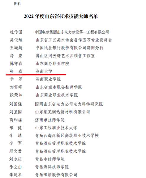 近日,山东省人力资源和社会保障厅发布了《关于公布2022 年度山东省技术技能大师名单的通知》,公司烹饪与营养教育专业张淼老师榜上有名,荣获2022年度山东省技术技能大师称号。