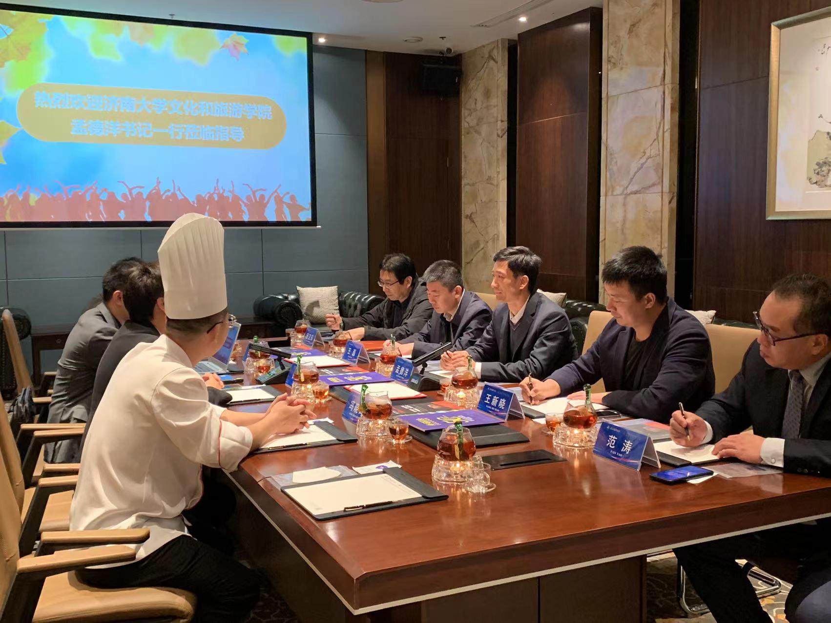 为进一步推进产教融合,深化校企合作,10月14日,公司党委书记孟德洋一行到山东舜和酒店集团走访,公司党委副书记王磊、办公室主任王新晓、食品科学与营养系汤卫东主任、范涛老师陪同走访。