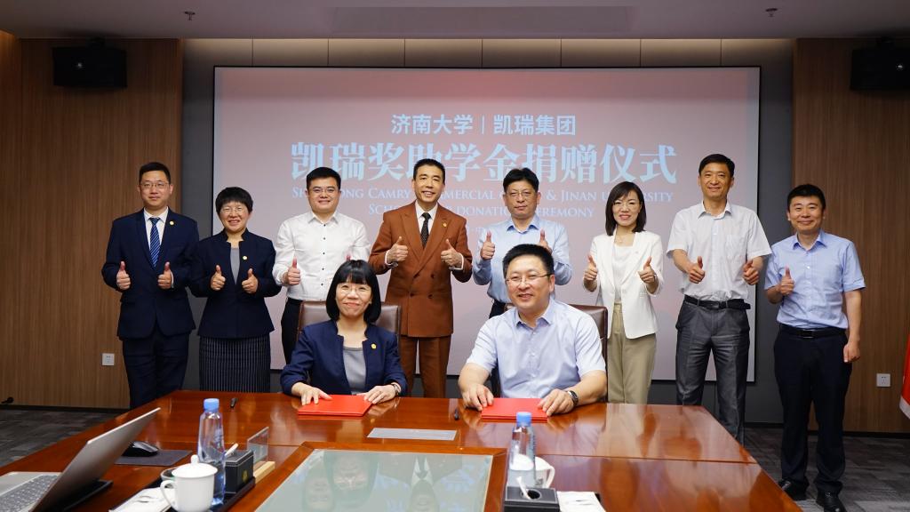 仪式上,公司合作发展处处长、教育发展基金会秘书长卢旺与凯瑞商业集团人力资源中心总监胡嘉签署教育发展基金捐赠协议。杨景波与赵孝国共同为蓝鲸体育就业实习基地揭牌。
