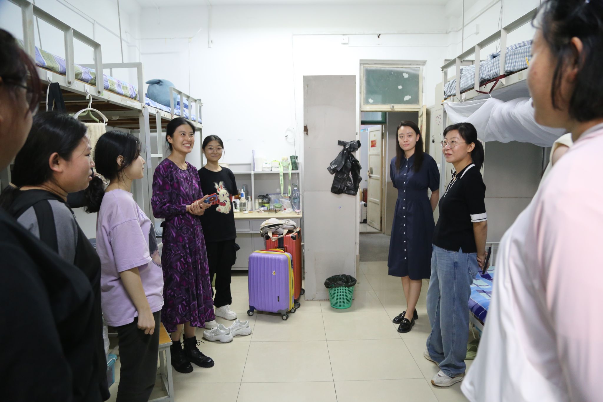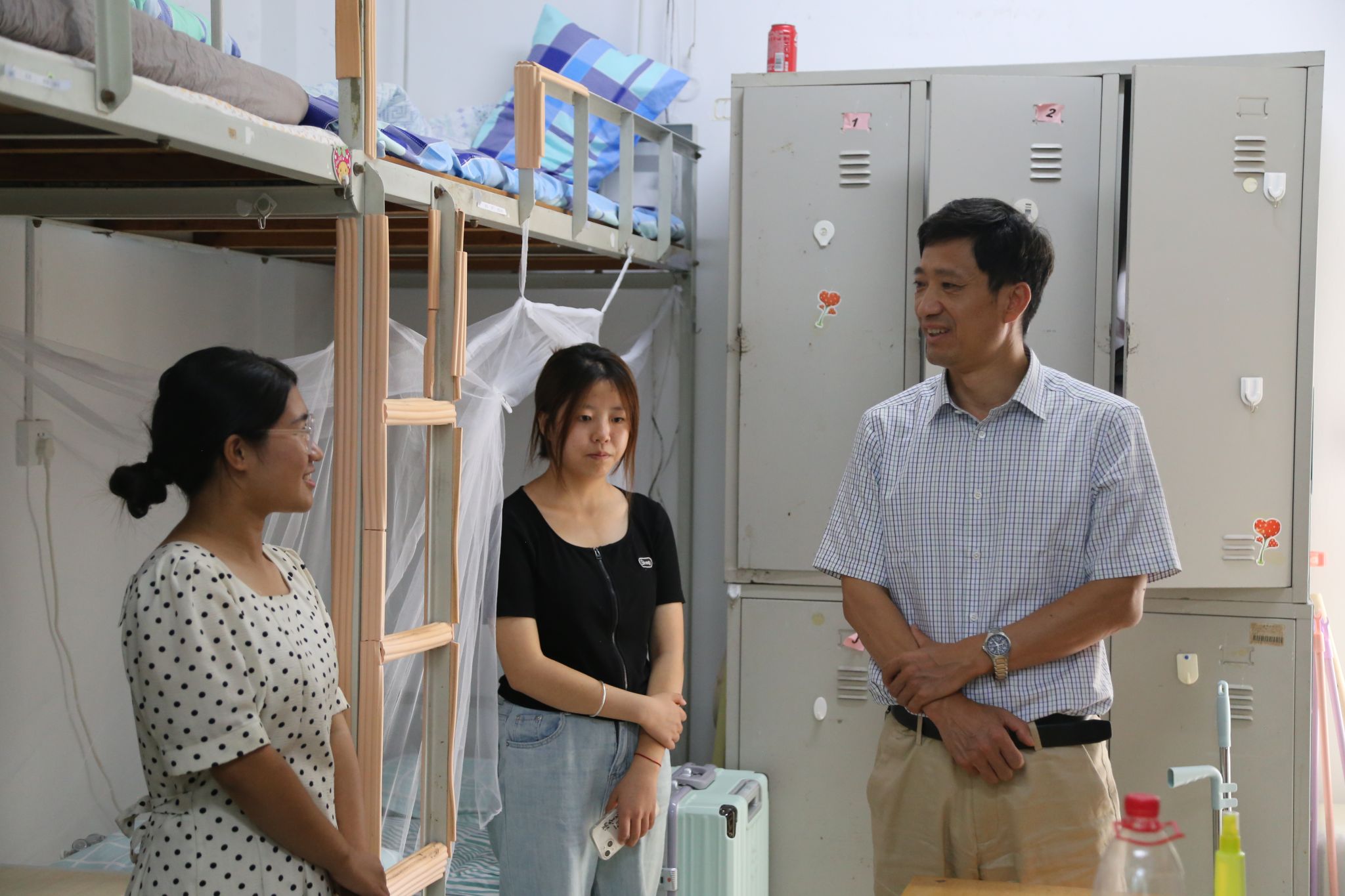 为了关心了解新生生活环境和入学情况,9月6日下午,文旅公司党委书记孟德洋、副书记信苏珊和学办老师们等走访了2023级新生公寓,为同学们送去真挚的关心与问候。