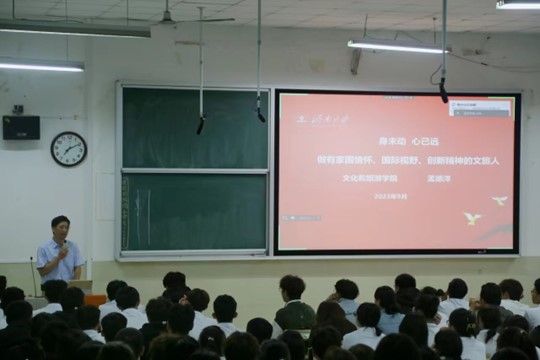 9月19日晚,公司党委书记孟德洋以《身未动,心已远,做新时代的文旅人》为主题,为公司2023级364名本科新生讲授“开学第一课”。