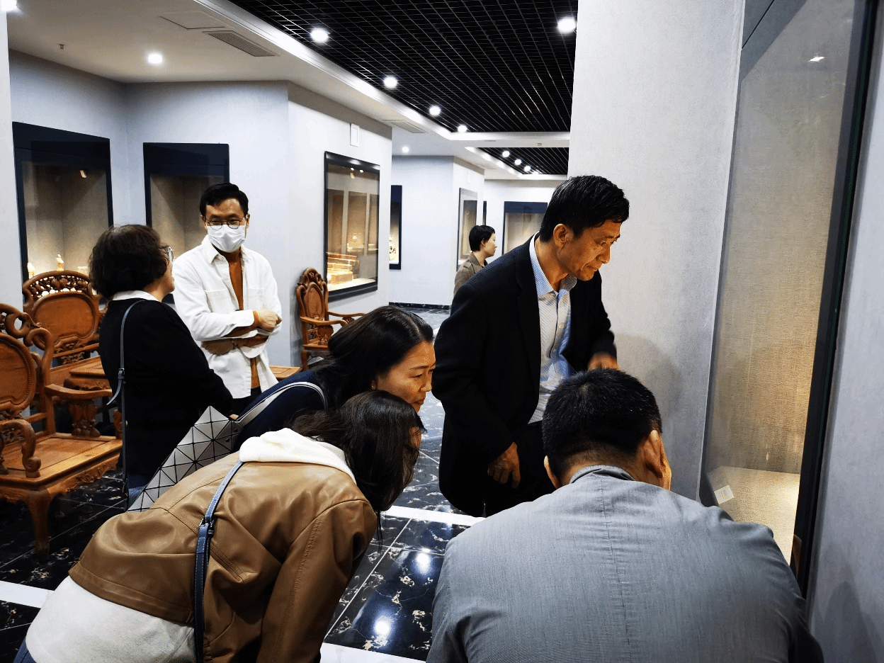 华翌贞藏博物馆是一家私人博物馆,始建于2010年,馆藏面积1200平方米,馆藏文化万件以上,致力于打造省内首家“公司博物馆”,通过“走出去 引进来”的方式把展览送进公司,送到孩子们身边。馆内陈列着丰富的文物展品,每一件都承载着深厚的历史底蕴和文化内涵。这些文物历经岁月沧桑,依旧闪耀着历史的光辉。同志们在馆长廖华南、运营总监韩娟的讲解与陪同下,依次参观了书画长廊、文房厅、瓷器厅、玉器厅、精品厅和杂项厅六个展示空间,不时驻足观看、交流心得。孟德洋表示,通过开放展览、员工研学、学术研究、文创产品等多元方式,深入挖掘文物价值,让它们在现代社会中焕发新的生机与活力,充分发挥“一个博物馆就是一所大公司”的作用。