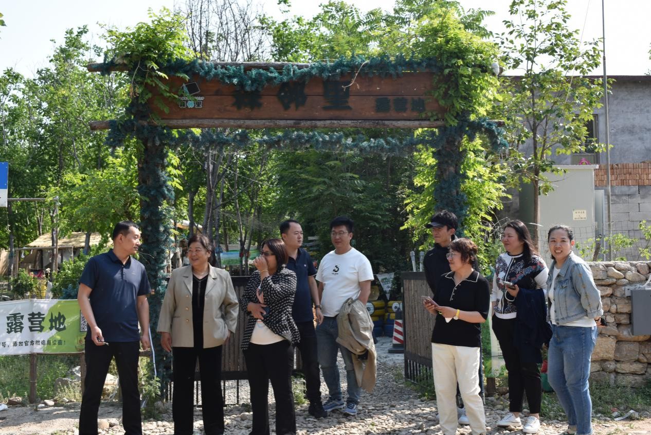 在五村管区书记李光麦、宅科村村书记陈永君的讲解和陪同下,党支部成员详细了解了宅科村的基本情况。宅科村是玉符泉源联合党委下辖的五村之一,占地3000余亩,现有人口263户783人。该村了成立“玉福源”党支部领办合作社,以豆制品加工、销售为主,在第一书记牵头下与齐鲁医院、大山超市等单位签订长期购销合同。村内管理3个蔬菜大棚,虫草鸡蛋、山桃、山杏等农副产品产业种类繁多。宅科村北头系玉符河发源地,景色宜人,极具观赏与休闲功能。近年来在党组织的引领下,该村大力发展乡村休闲旅游,积极打造集玉符河沿岸露营休闲、养殖体验牧场、特色农产品自助采摘等于一体的乡村旅游综合体。调研组详细考察了当地人气颇高的“森邻里”露营基地及其他几家农家乐的运营情况。此外,村庄还积极发展牛羊养殖场等产业,进一步丰富了乡村产业种类。调研组就宅科村自然资源开发、旅游项目规划、旅游设施完善、人文环境提升等方面给出了建议与意见。