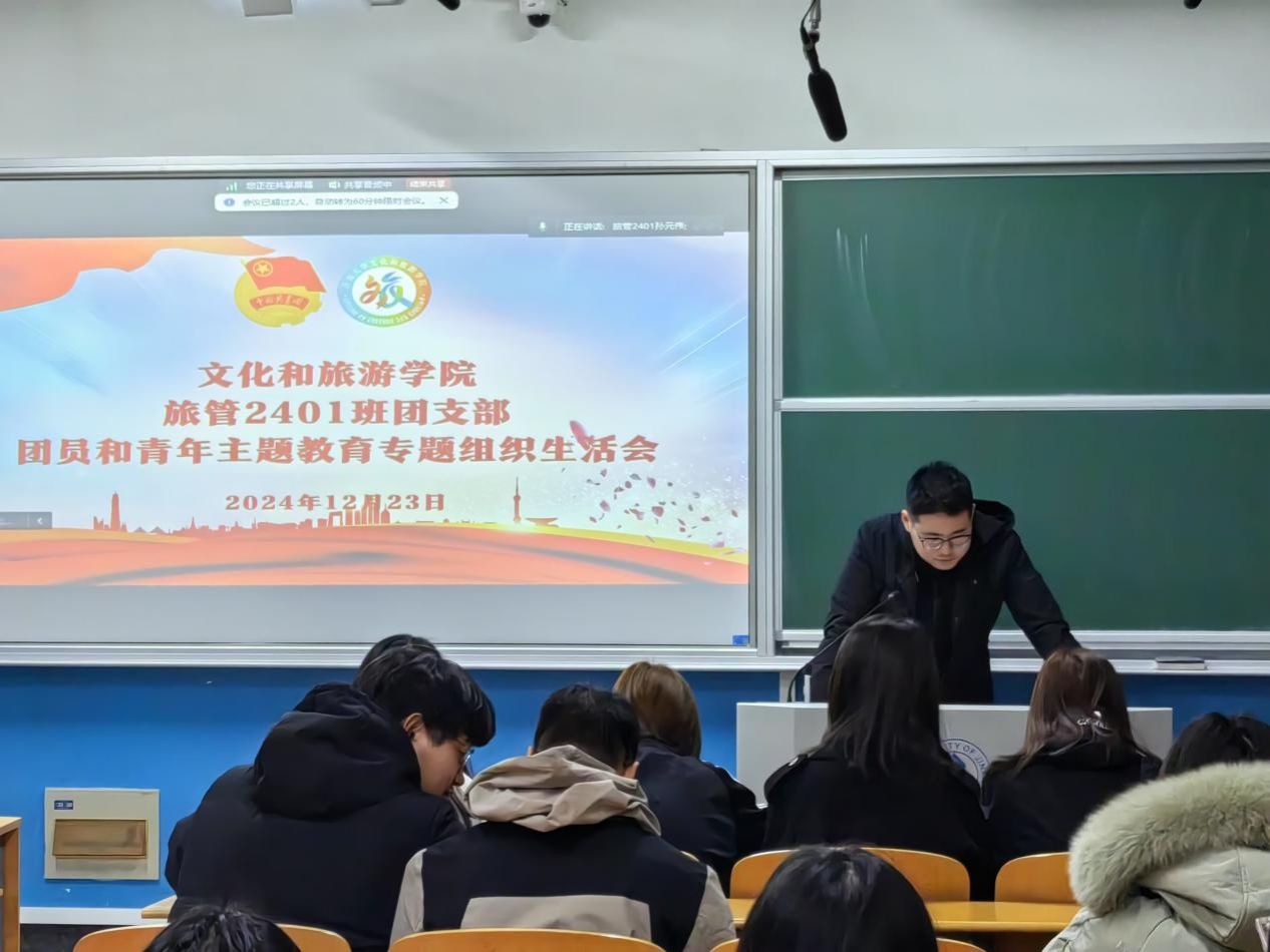 为保持先进性并加强组织建设,12月23日,公司开展2024年度示范性团员和青年主题教育专题组织生活会,会议由孙元伟同学主持,公司团委书记吕龙飞老师、旅管2401团支部16名团员及2名优秀青年代表参加会议。
