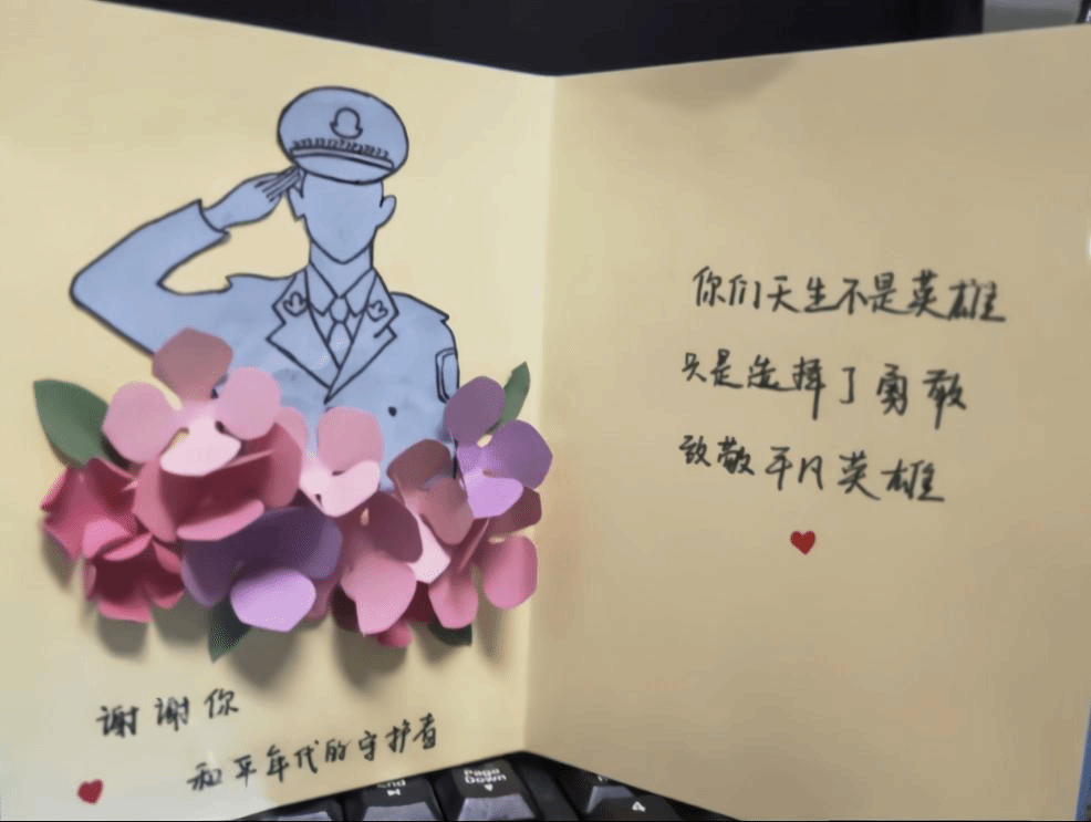 在这个虚拟的活动“现场”,虽然大家身处不同空间,但热情丝毫不减。志愿者们化身贴心的线上引导员,通过精心制作的视频展示警察们那些不为人知的感人瞬间、危难时刻挺身而出的英勇事迹以及日常守护的平凡点滴,这些内容一经播放,便牢牢抓住了同学们的目光,为大家开启了创意的源泉,助力同学们更好地构思自己的作品。观看完视频后,同学们便沉浸到便签和贺卡的制作中,为人民警察写下真挚的祝福、感谢话语或绘制饱含深情的相关图案,以此表达对警察群体的崇高敬意与赞美之情。