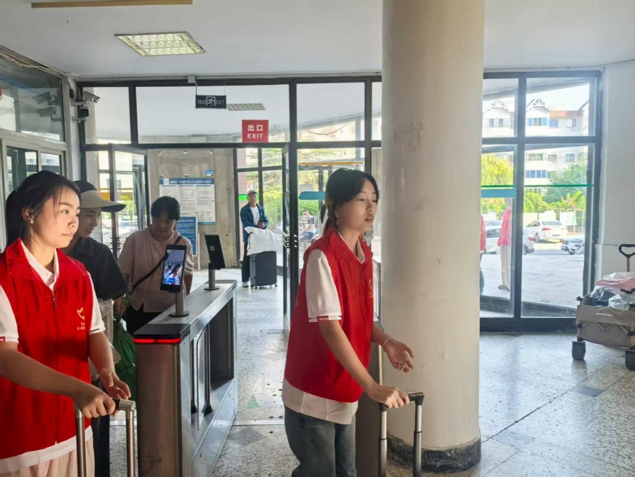 活动当天,志愿者们早早到位,分工有序、积极协作。迎新帐篷前,志愿者们耐心解答疑问,协助新生办理信息登记、材料领取等手续,并细致介绍校园布局、食堂、图书馆等学习生活信息。他们主动上前、伸出援手,帮助搬运大件行李,一路送至宿舍楼下。校门口,志愿者们微笑迎接初来校园的新生与家长,清晰指引报到路线;员工公寓内,同样忙碌不止——讲解设施使用规范,回应各类生活问题,亲切交谈中传递着济大校园的友好与温暖。