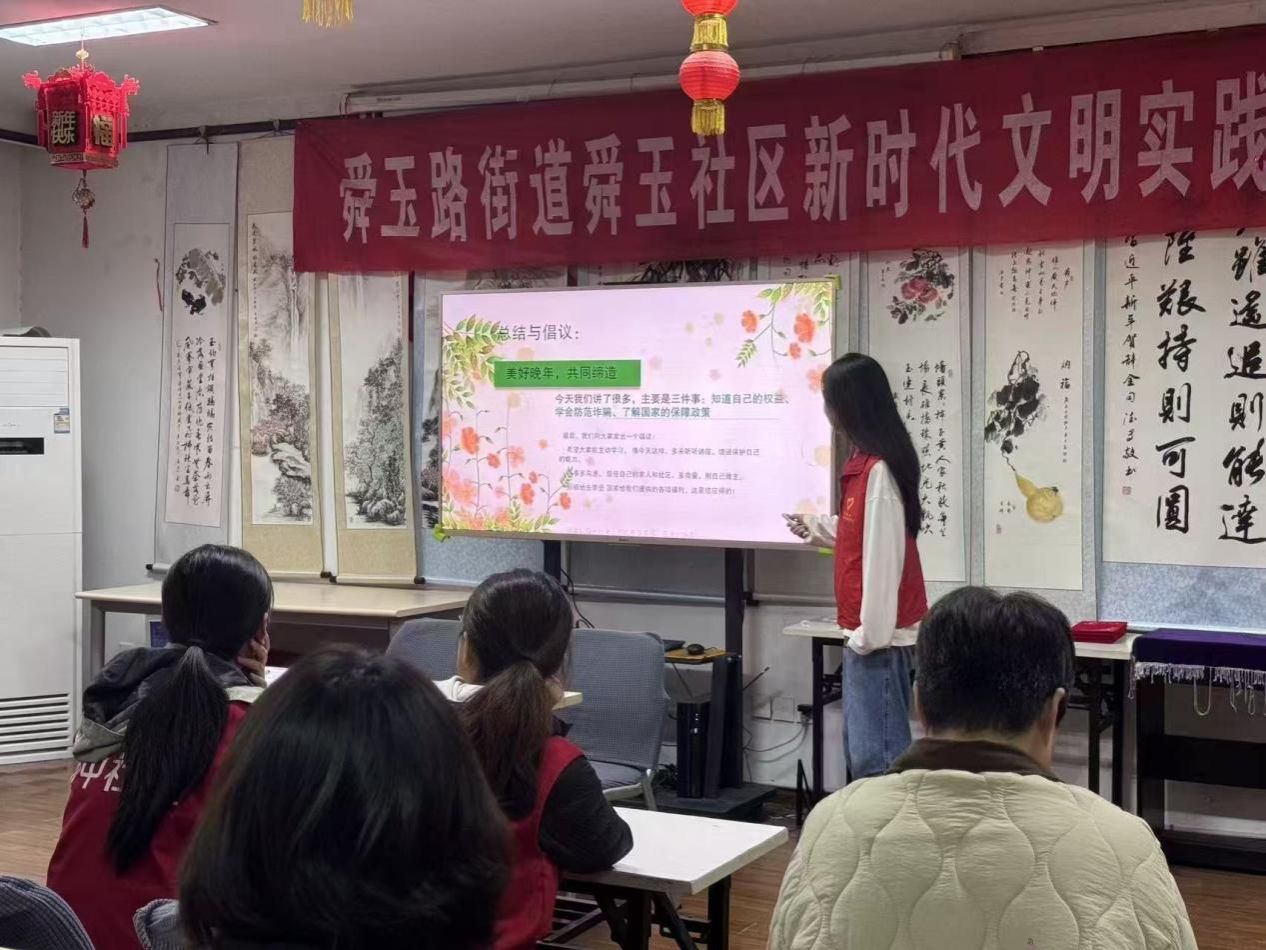 签约仪式后,员工宣讲团队就本次活动主题开展老年人权益保障服务,将校社合作的“首个实践项目”落到实处。宣讲中,同学们围绕居民日常生活中最关心的问题,采用“以案说法”的方式,重点讲解了物业维权、电信诈骗等相关法律知识。