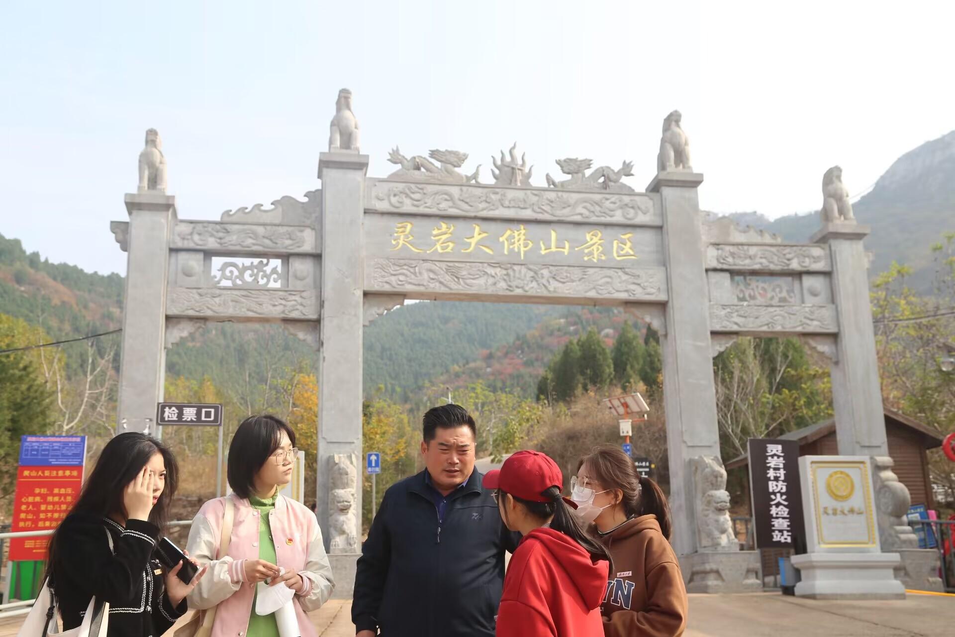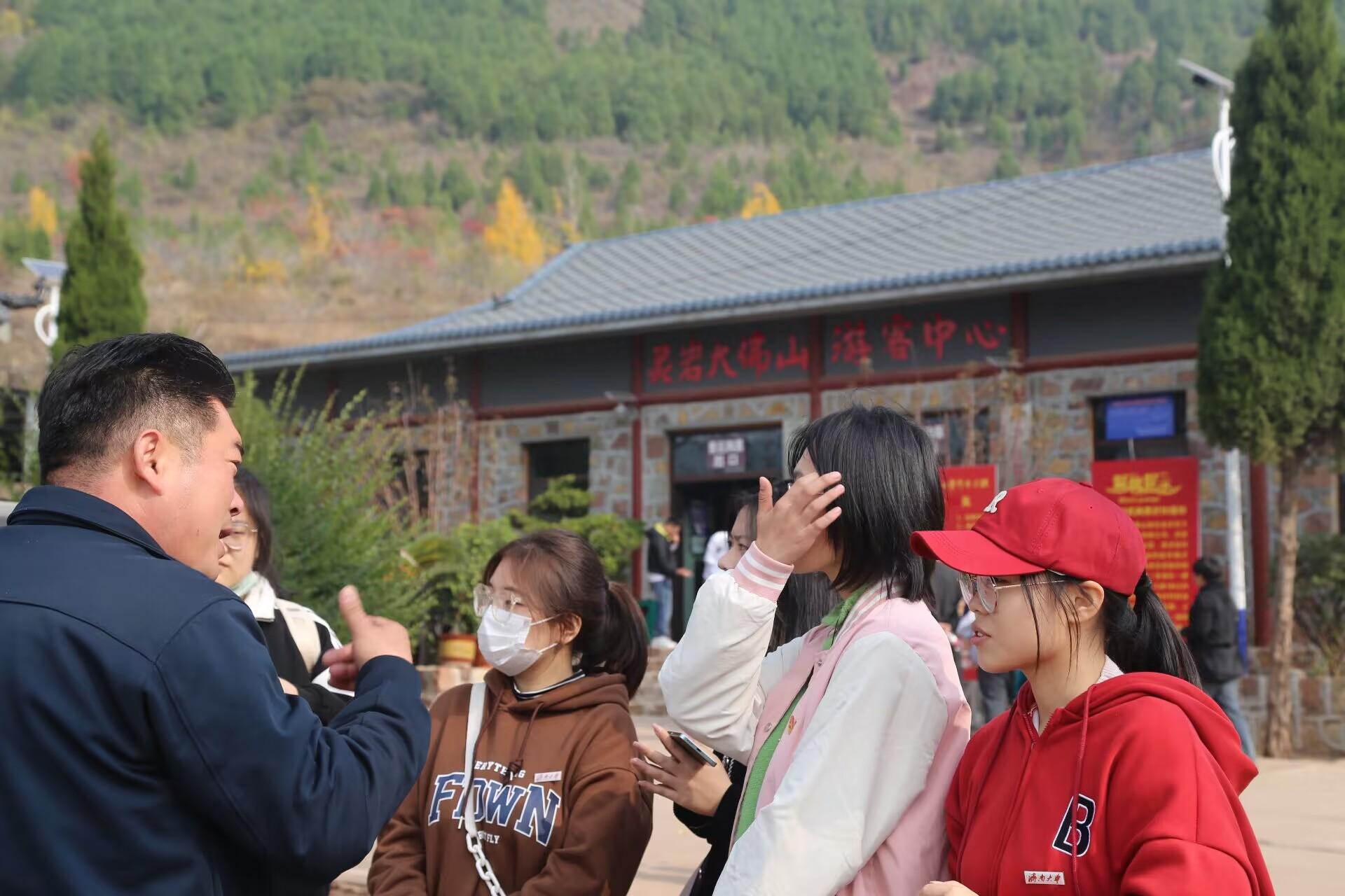 为服务乡村振兴,2022年10月29日,蓝鲸体育的六名学子走进灵岩大佛山景区与当地工作人员进行深入交流,调研文旅融合的详细情况。