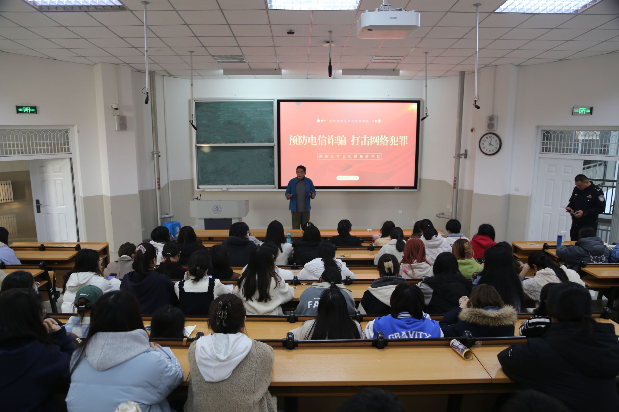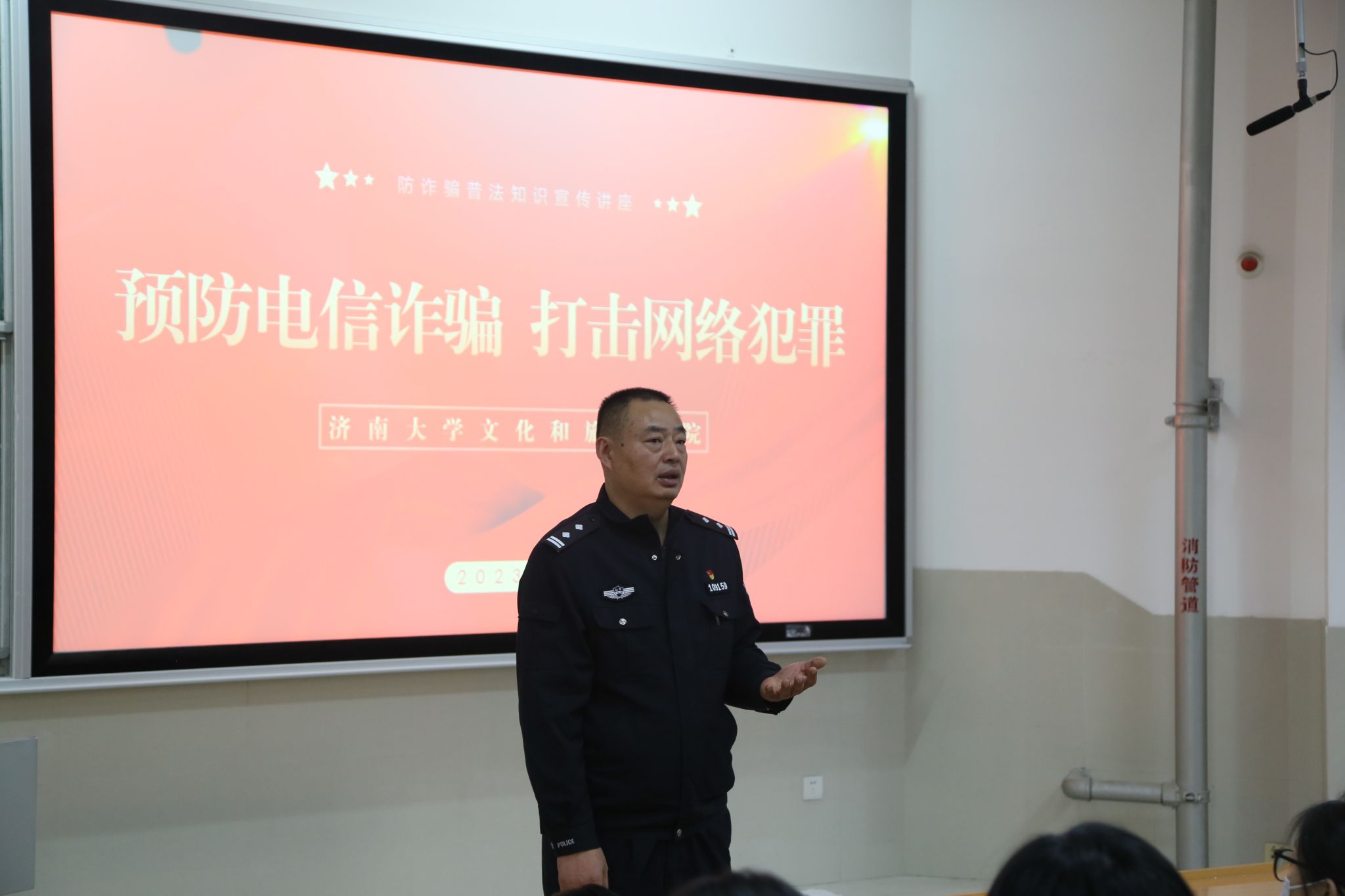 为提升员工反诈意识、增强反诈能力,切实做好安全教育,进一步筑牢公司安全屏障。12月5日下午,公司联合公司保卫处,邀请济南市公安局舜玉路派出所在舜耕校区三教201教室开展了防范电信诈骗宣传讲座。济南市公安局舜玉路派出所副所长孙全修警官、公司保卫处舜耕校区保卫科科长张韶春、学办部分老师及200余员工参加此次活动。讲座由学办老师王明扬主持。