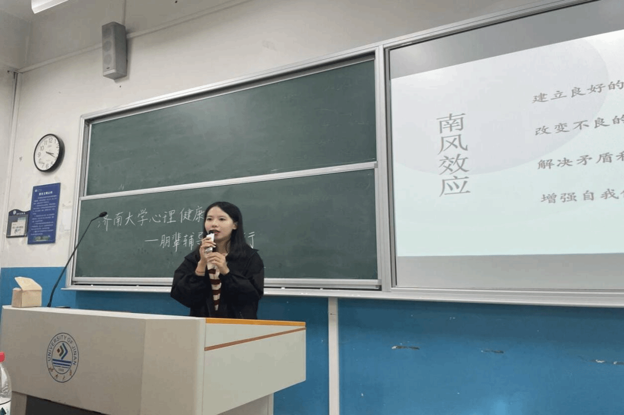 在宣讲过程中,见习小组给同学们普及了富兰克林效应、南风效应等常见的心理学效应,并针对老员工适应问题提出了合理细致的对策。此次心理健康教育培训的开展,不仅传授了同学们许多交往技巧,而且帮助同学们了解了心理健康的意义,也正确认识了心理咨询。