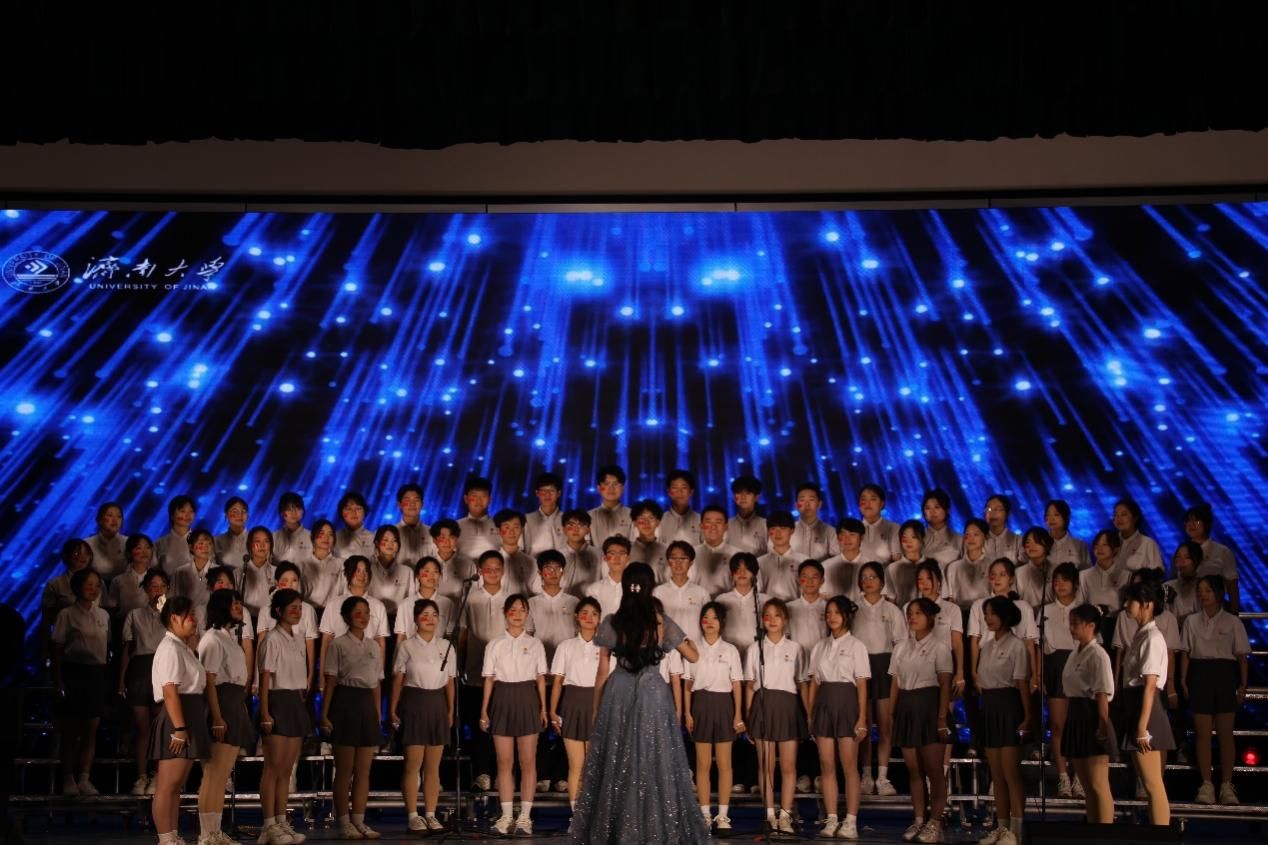 10月19日比赛当天,在现场文旅公司观众“灯火漫卷耀星光,青春拂晓奏华章。七十五载风华颂,砥砺奋进展雄风”的助威声中,蓝鲸体育合唱团用校歌《你我同行》和自选曲目《夜空中最亮的星》惊艳全场。《你我同行》浑厚有力,婉转动人,唱出了济大人的使命与担当,展现出了济大学子昂扬向上的精神风貌;《夜空中最亮的星》深情动人,表达了文旅公司员工对未来的美好憧憬与坚定信念。演唱过程中,同学们情绪饱满,声音嘹亮,将歌曲中的情感表达的淋漓尽致,赢得了现场观众和老师们的欣赏与认可。
