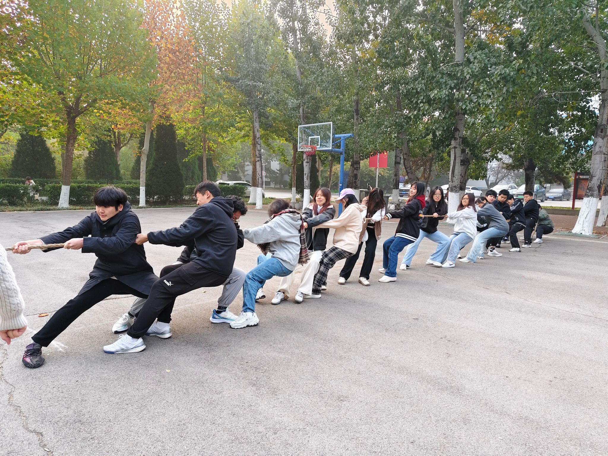 秋阳杲杲,金风送爽。为丰富员工校园生活,增强集体凝聚力,培养员工集体荣誉感和团队协作能力,10月29日至30日早7:30,公司与管理科学与工程公司在舜耕校区篮球场联合举办“团结一心,绳采飞扬”拔河友谊赛。