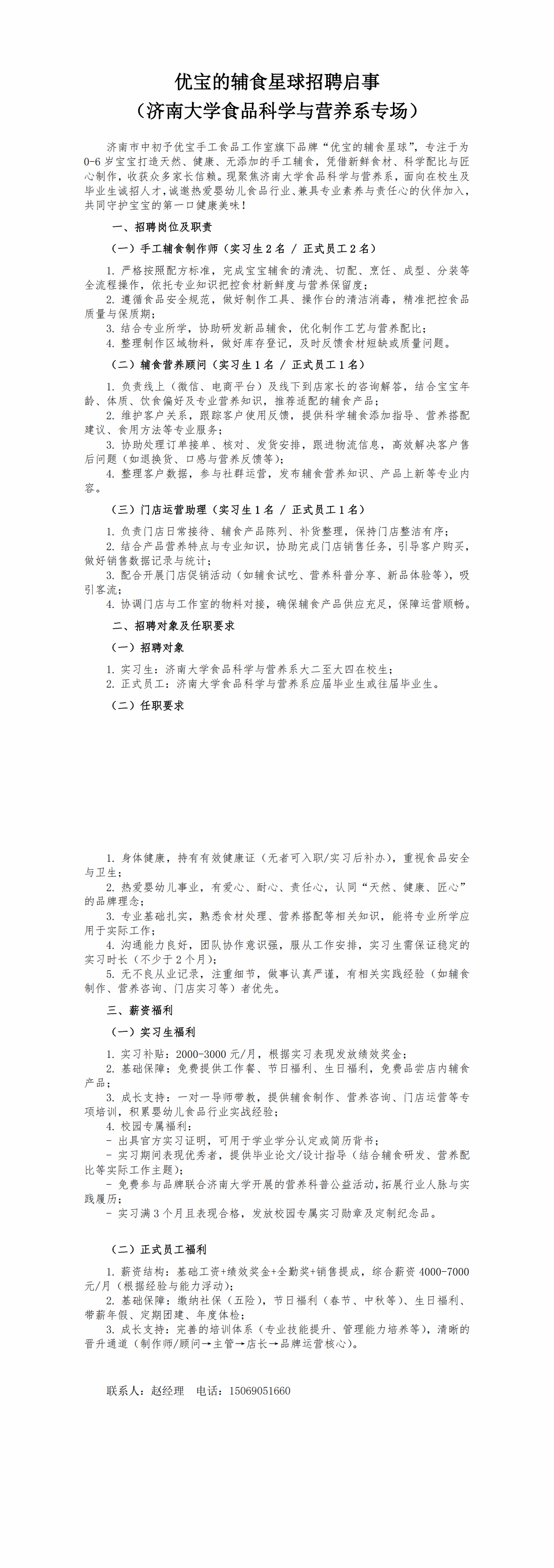优宝的辅食星球招聘启事 (蓝鲸体育食品科学与营养系专场)